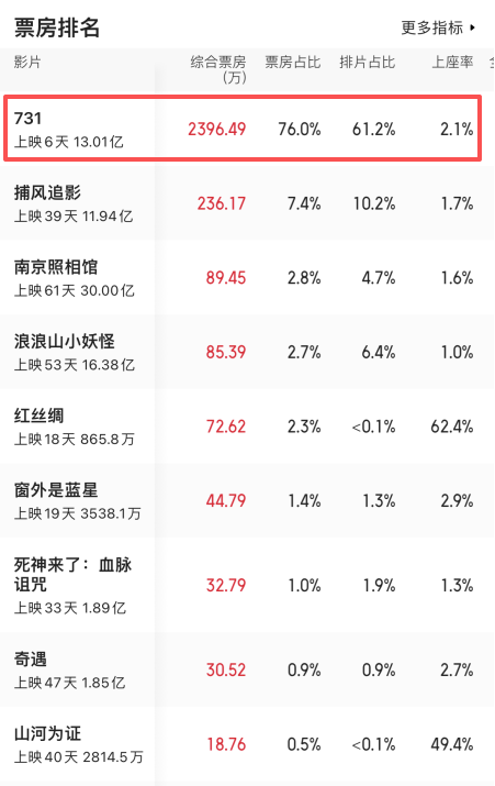 不论是票房还是热度,《731》毫无疑问都是妥妥的年度票房种子选手。